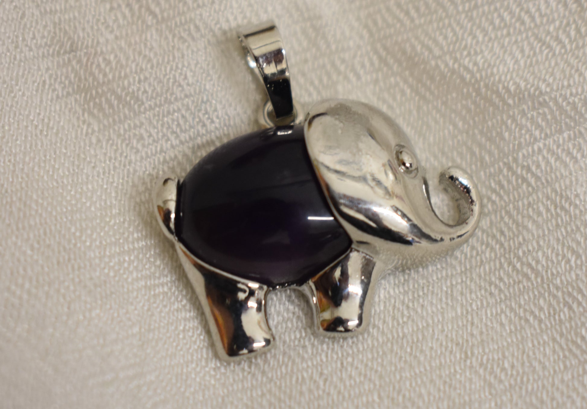 Costume Amethyst Elephant Pendant (925) Sterling Silver